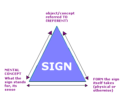 Examples of the different parts of a SIGN -- the sign, its physical form, what it refers to (or "signifies"), and how it might be interpreted.